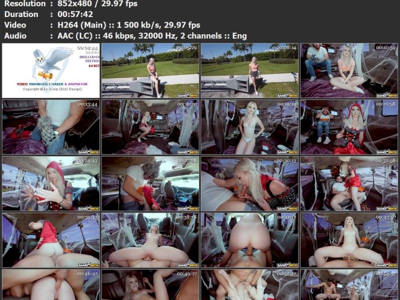 It's Halloween Bitches! Britt Blair is a soft spoken spooky girl. Peter Green is a wolf man who likes to fuck. The bus pulls up on her and has her jump in to try on some costumes. That was worthless because she ends up taking them off. She found dick in the candy bowl and sucked it like a lolly. Peter made her howl like a wolf as he fucked her and obviously came on her face. They ditched her the little red riding hoe on the side of the road when they were done.